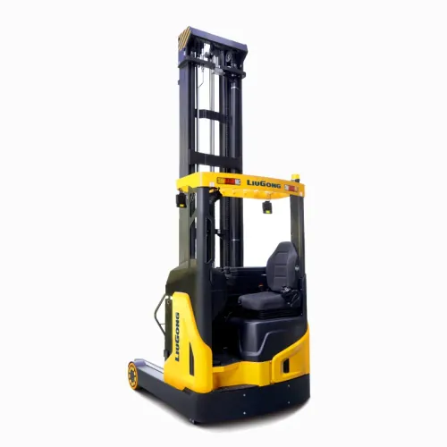 Electric reach truck with seated operator, available in 1600kg and 2000kg load capacities. Designed for stability, safety, and efficiency in material handling.
